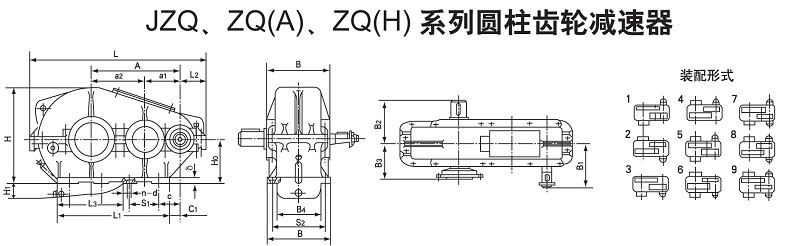 JZQ,ZQ(A)、ZQ(H)系列圓柱齒輪減速機參數(shù)及安裝尺寸: