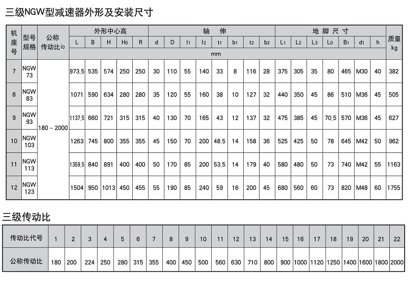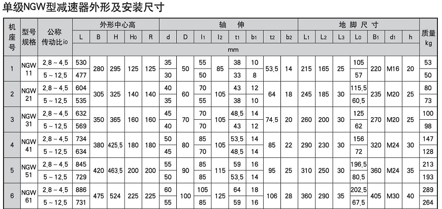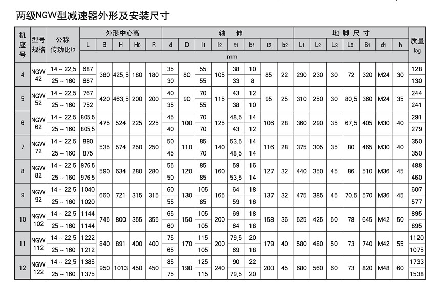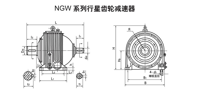 NGW系列行星齒輪減速機安裝尺寸圖: